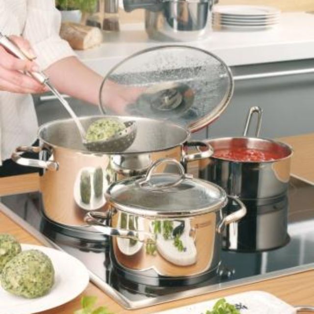 + Khi nhìn sơ qua tổng thể bộ sản phẩm, bạn sẽ thấy chúng có độ sáng bền lâu rất đẹp. Tất cả là nhờ vào chất liệu Cromargan 18/10 làm nên sản phẩm. Đây là chất liệu có độ bền, độ chịu nhiệt cao. Khi sử dụng để làm các món đồ gia dụng, đặc biệt là nồi sẽ có khả năng bắt nhiệt nhanh, giữ nóng lâu và không hề bị đen nồi cho dù bạn đun tại bất cứ loại bếp nào.