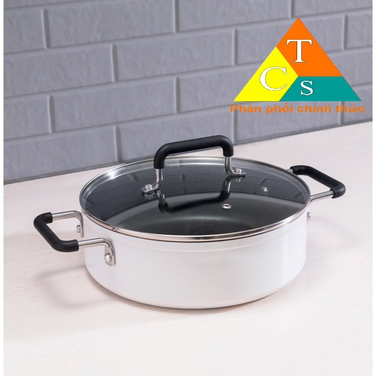 ✔ Chiếc nồi dạng hình tròn với phần đáy rộng 260mm và chiều cao khá khiêm tốn chỉ 80mm, sở dĩ chiếc nồi có kích thước này vì đây là loại nồi chuyên dụng để chế biến các món canh súp, nấu lẩu hoặc các món nước khác. Phần đáy có kết cấu 2 lớp dày dặn khá đặc biệt bao gồm một mặt tiếp xúc trực tiếp với bề mặt bếp, có tác dụng tiếp nhận và phân tán đều lượng nhiệt lượng ra toàn bộ tiết diện nồi để làm chín thức ăn nhanh chóng