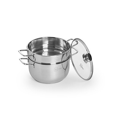 - Bộ nồi bao gồm: 1 nồi, 1 xửng hấp, 1 nắp thủy tinh đường kính tương ứng các sz nồi
