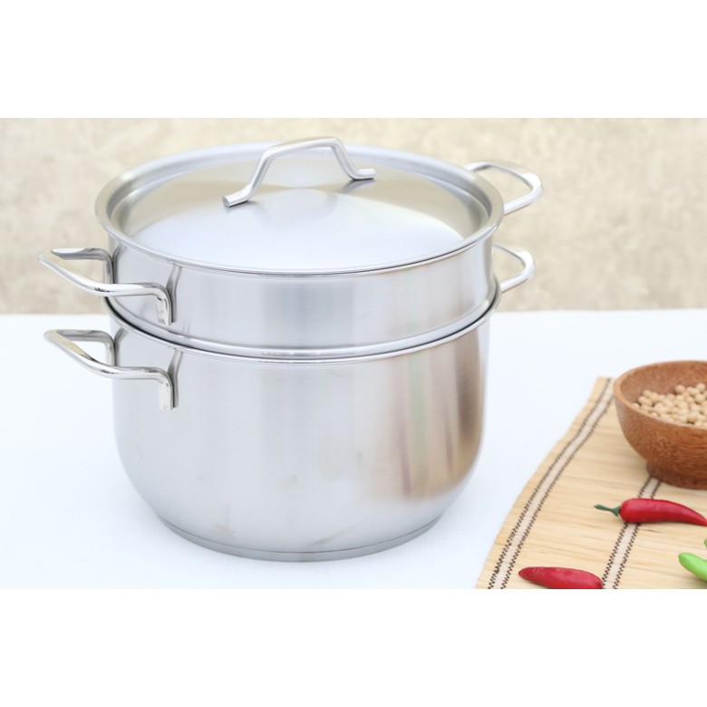 - Bộ gồm: 1 nồi, 1 xửng, và 1 nắp inox