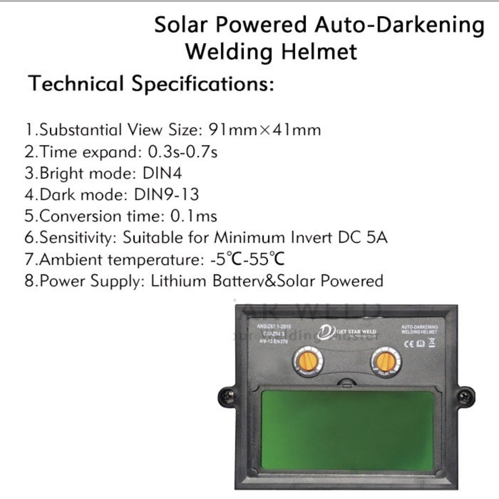 Nón Hàn Điện Tử Cảm Biến Tự Động Điều Chỉnh Ánh Sáng Điều chỉnh được độ sáng tối, nhanh chậm chuyển đổi sáng, độ trễ nhạy sáng để có thể phù hợp với từng cơ mắt mỗi người