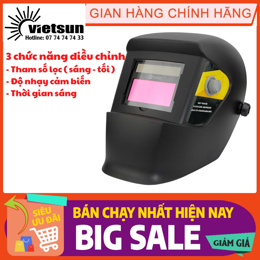 Nón Hàn Điện Tử Cảm Biến Tự Động Điều Chỉnh Ánh Sáng phù hợp với hàn Tig, hàn Mig, hàn Que, cắt plasma, hàn hơi, cắt gas oxy