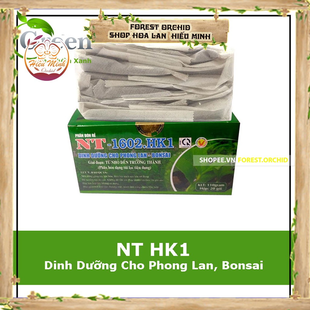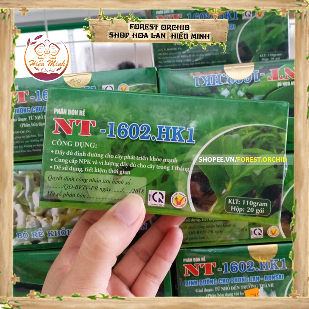 NT 1602-HK1 Dinh dưỡng cho Hoa Phong Lan, ( Hộp=20 túi nhỏ)Phân bón dinh dưỡng cho Lan HVP 1602.HK1 cung cấp chất dinh dưỡng đầy đủ hợp lý cho cây phát triển BỘ RỂ khỏe mạnh nhiều rể non. Dinh dưỡng cho Lan HVP 1602.HK1 được sử dụng cho Lan giai đoạn từ lúc bé tới lúc trưởng thành. Tiết kiệm thời gian chăm sóc, hiệu quả cao.