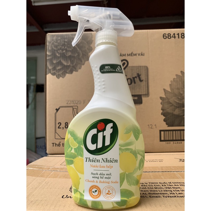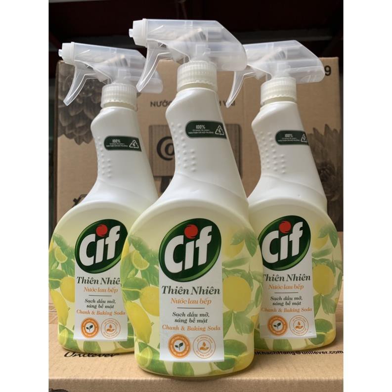 Nước lau bếp Cif sẽ giúp đánh bay vết bẩn, hoen ố, dầu mỡ trong nhà bếp siêu nhanh trong vòng 10 giây, trả lại không gian nhà bếp sạch sẽ và thoáng mát cho bạnHướng dẫn sử dụng: Vặn nút chai qua ON. Phun Cif lên bề mặt cần làm sạch. Lau lại bằng khăn ẩm. Sau khi sử dụng, vặn nút chai trở lại OFF