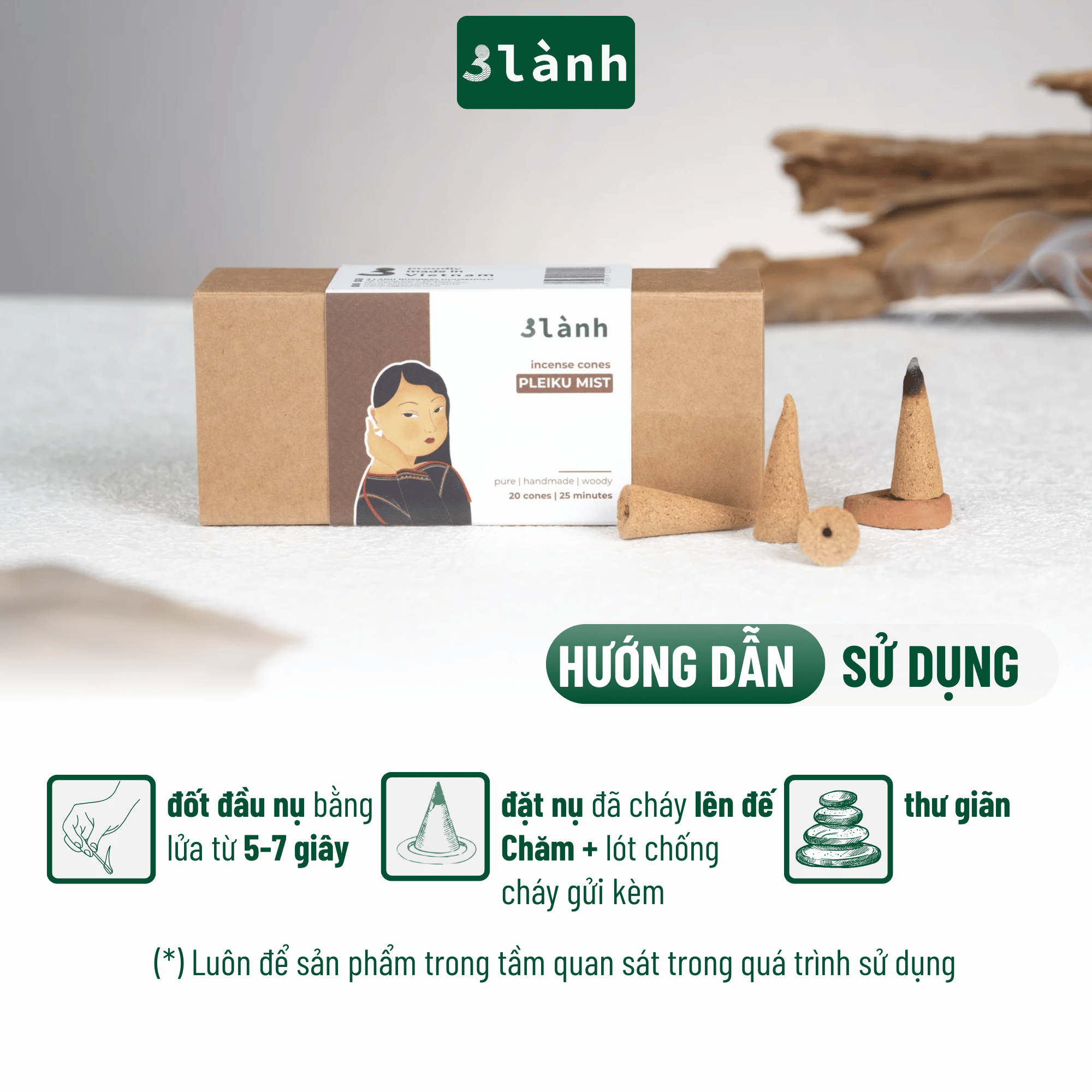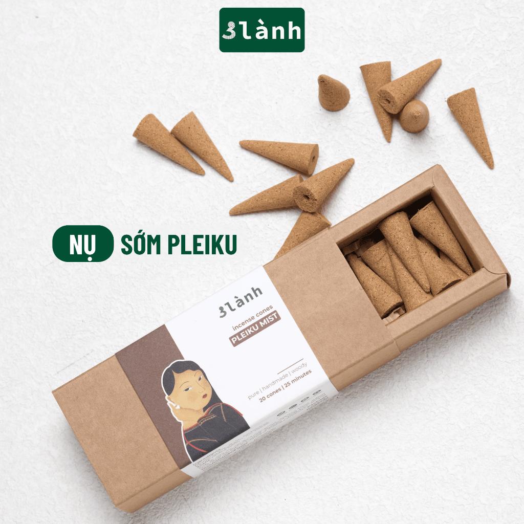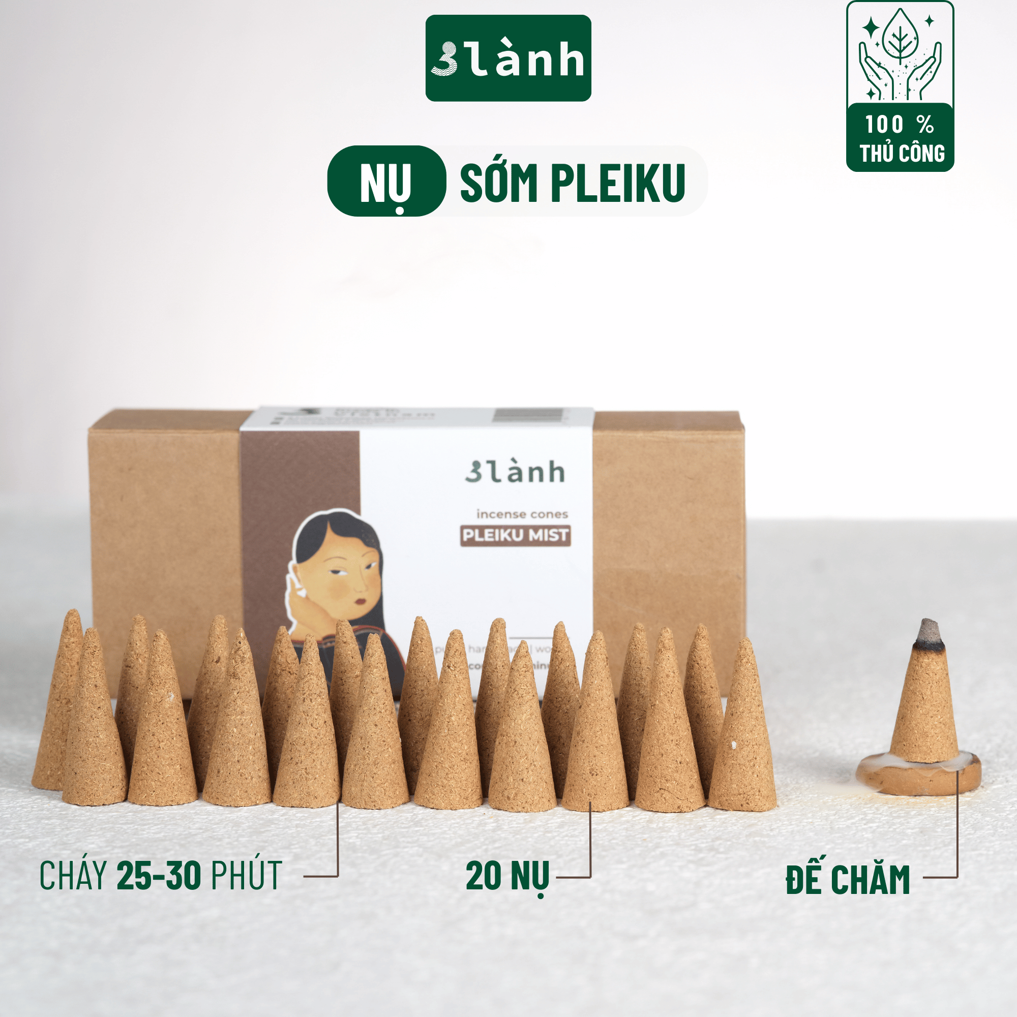Pleiku Mist (Sớm Pleiku): agarwood (trầm hương), palo santo (gỗ thánh), frankincense (nhũ hương), benzoin siam (an tức hương), bergamot (vỏ cam), keo bời lời. Hương gỗ, ấm sớm mai