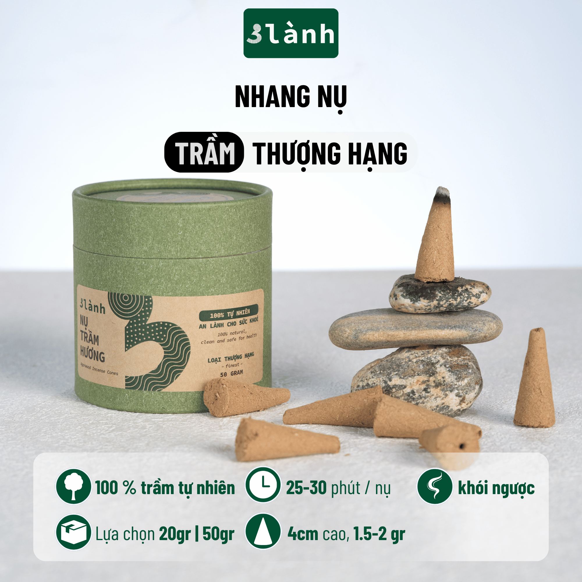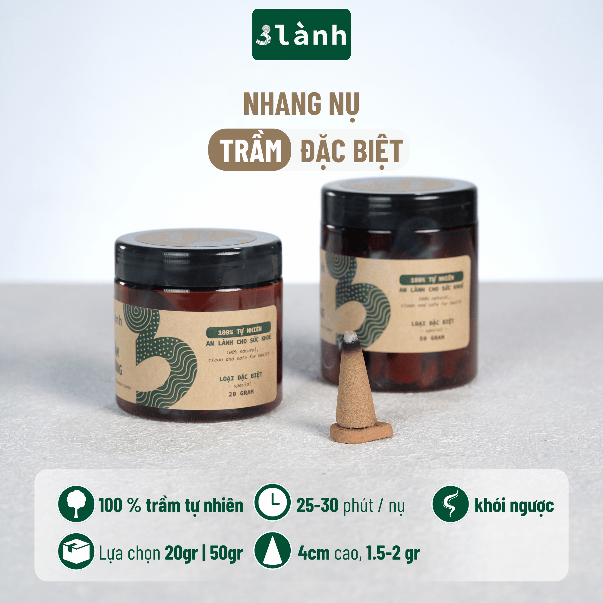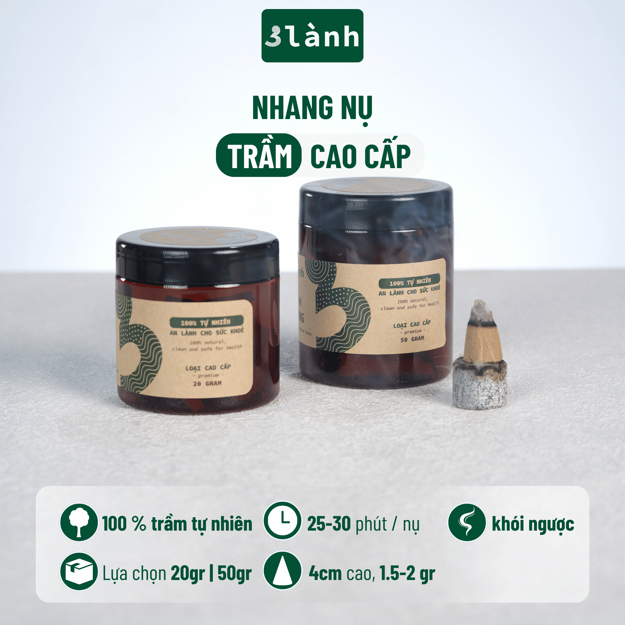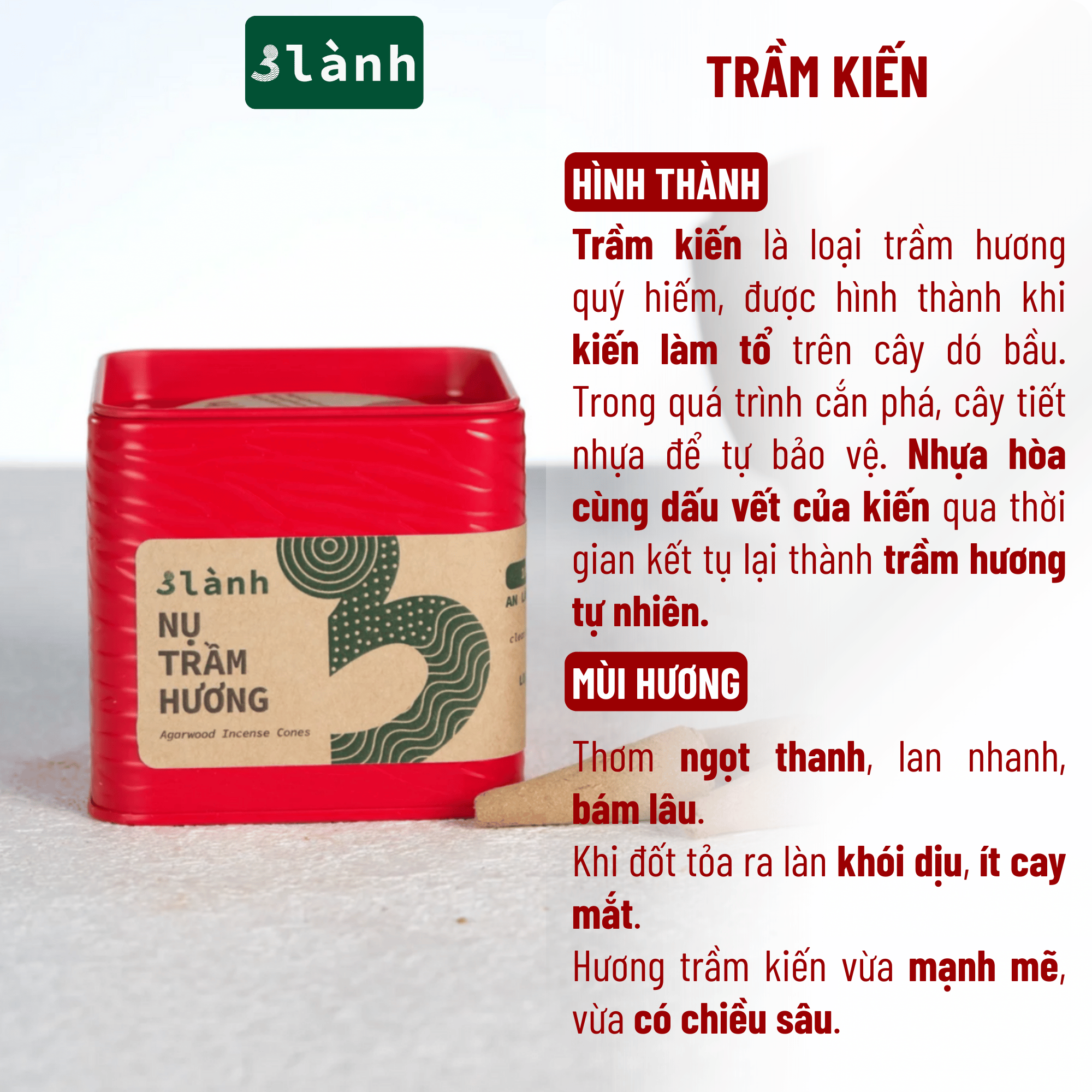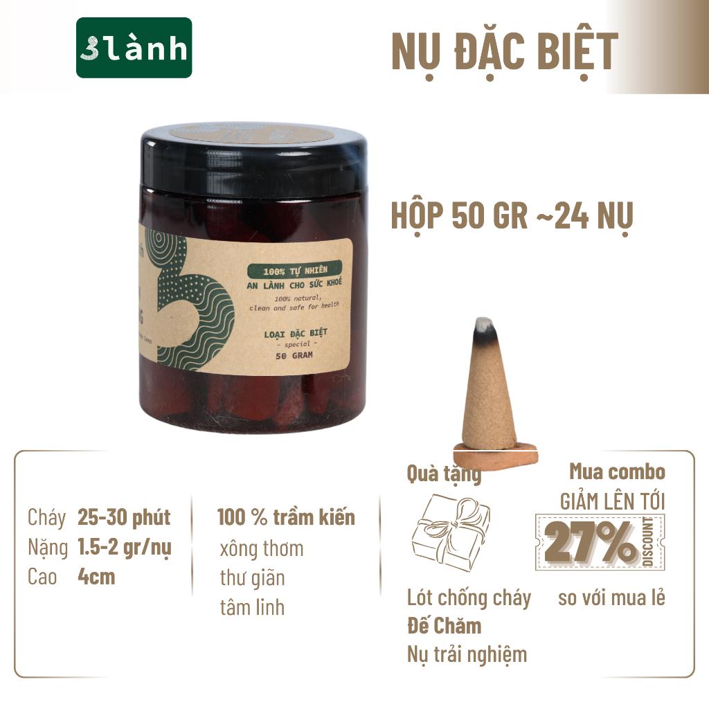 Thông tin sản phẩm Nụ Trầm Hương Sạch Tự Nhiên Không Hóa Chất thương hiệu 3 Lành Xuất xứ nụ trầm hương: Pleiku, Việt Nam Phân loại theo tuổi trầm Đặc biệt: Được làm từ bột vụn trầm tu...- Giao hàng toàn quốc