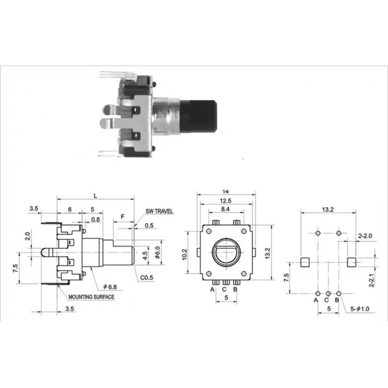 EC12 loại cao cấp chất lượng cao, kích thước lớn hơn EC11, thường dùng trong các bộ điểu khiển tốc độ bằng xung số.