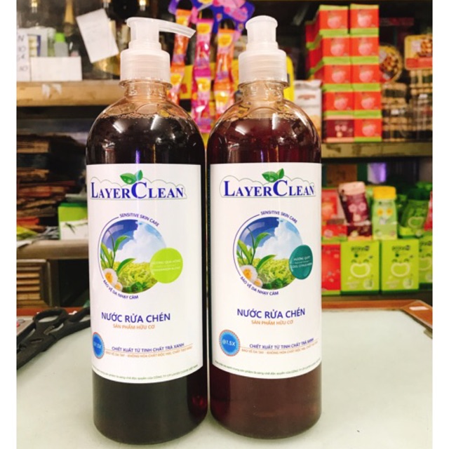 Nước rửa chén bát Layer Clean được làm từ nguyên liệu tự nhiên với thành phần chính là tinh chất Trà Xanh đủ sức mạnh làm sạch dầu mỡ, khử mùi thức ăn, sạch nhanh, sáng bóng, không làm nhờn tay, không lưu mùi hương trên bát dĩa và sạch chỉ sau 1 lần xả nước.Nước rửa chén hiện tại có 3 mùi Hương tự nhiên: Hương Quýt, hương quả Hồng và hương Quế, là sự pha trộn cân bằng giữa tinh dầu thơm chiết xuất từ họ nhà cam Quýt, quả Hồng và Quế.