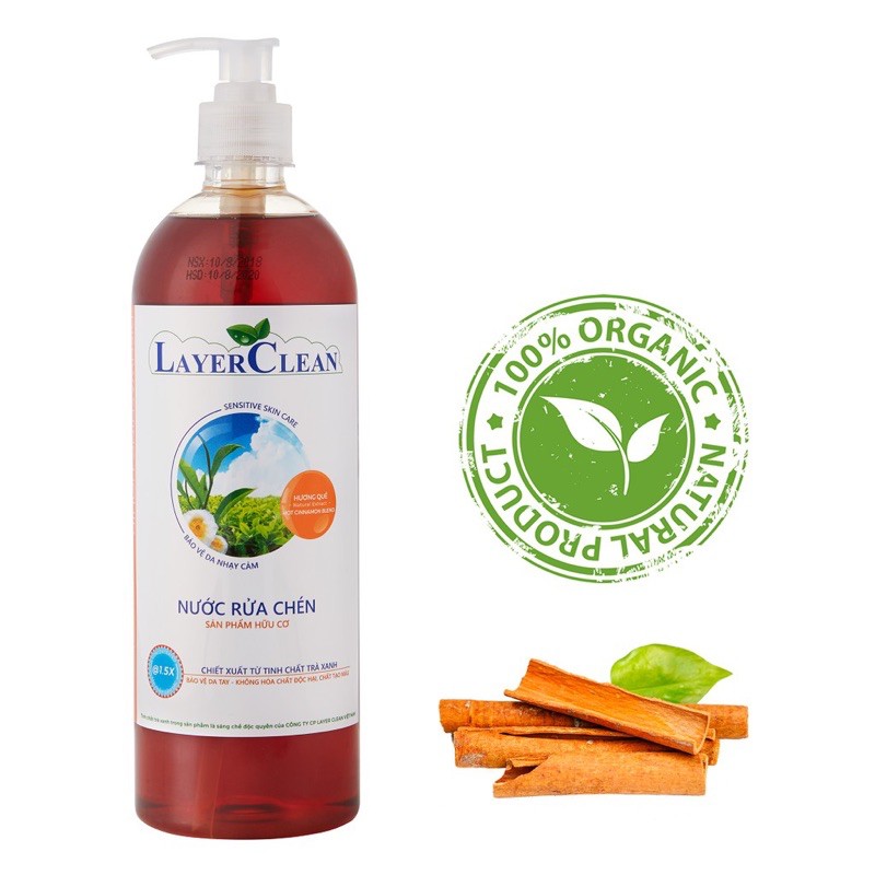 NƯỚC RỬA CHÉN BÁT LAYER CLEAN 800ML HƯƠNG QUẾ/ QUẢ HỒNG/ NƯỚC RỬA BÁT HỮU CƠ