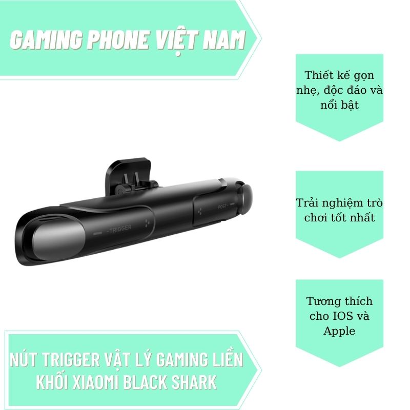 - Nút bấm chơi game Xiaomi Black Shark Gaming Trigger có thiết kế dạng kẹp nhỏ gọn. Phù hợp với điện thoại iPhone và Android. Giúp thực hiện chức năng ghi tốc độ tay, tiếp tục các đặc tính của Plug and Play mà không cần phải kết nối Bluetooth. Đây sẽ là trợ thủ đắc lực dành cho các tín đồ game nhập vai sinh tồn.