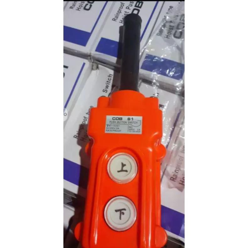 Tay Điều Khiển Máy Tời (Đảo Chiều Động Cơ) 2 Nút COB 61 Là một phụ kiện không thể thiếu khi sử dụng tời điện. Trong quá trình xây dựng, vận chuyển hàng hóa từ mặt đất lên trên cao nếu chỉ dùng sức người thì rất khó khăn, mất nhiều thời gian và tốn công sức. Sử dụng máy tời điện là một biện pháp giúp cho việc này trở nên dễ dàng hơn bao giờ hết, lại đảm bảo an toàn và hiệu quả cao.
