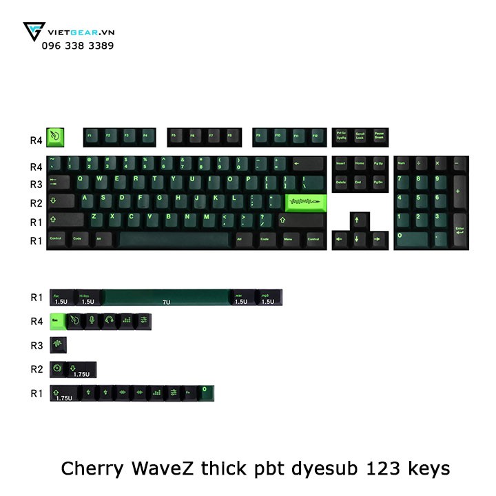 Bộ nút bàn phím Cherry Wave Z thick PBT dyesub 123 nútCherry Wave Z có tông mầu đen xanh rất đẹp, cao cấp