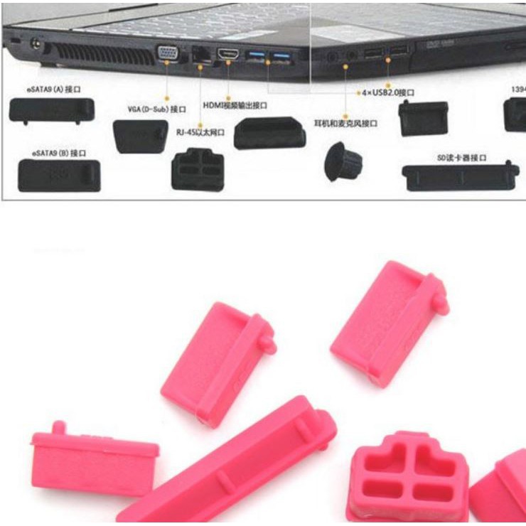Bộ nút chống bụi cho laptop với 13 món bảo vệ cho các cổng của máy.Thiết kế hợp lý, vừa vặn với tất cả các dòng máy tính xách tay trên thị trường.