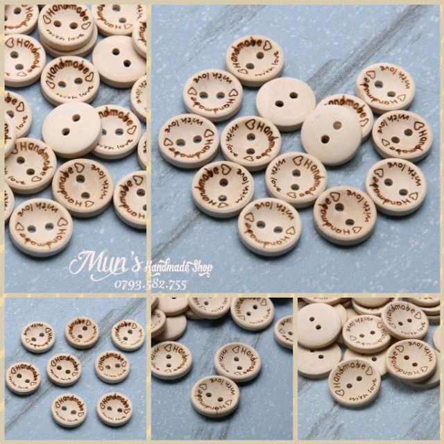 Sở thích & Sưu tầm > Dụng Cụ May Vá || Nút gỗ chữ HANDMADE WITH LOVE ❤ Cúc gỗ 1.5cm 2cm 2.5cmCòn hàng
