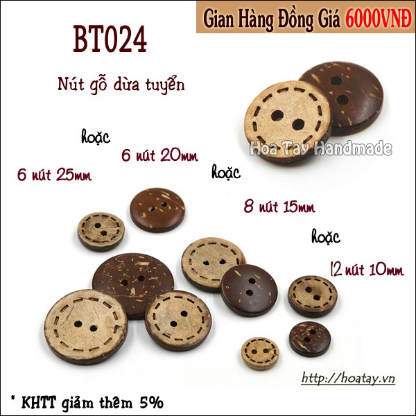 Sở thích & Sưu tầm > Dụng Cụ May Vá || NÚT GỖ DỪA TUYỂN BT024Còn hàng