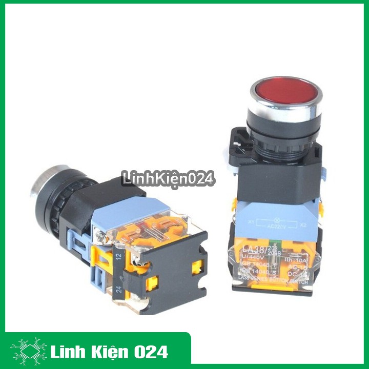 Nút Nhấn Đề Giữ Có Đèn LA38 380V-10A 1 Thường Đóng 1 Thường Mở