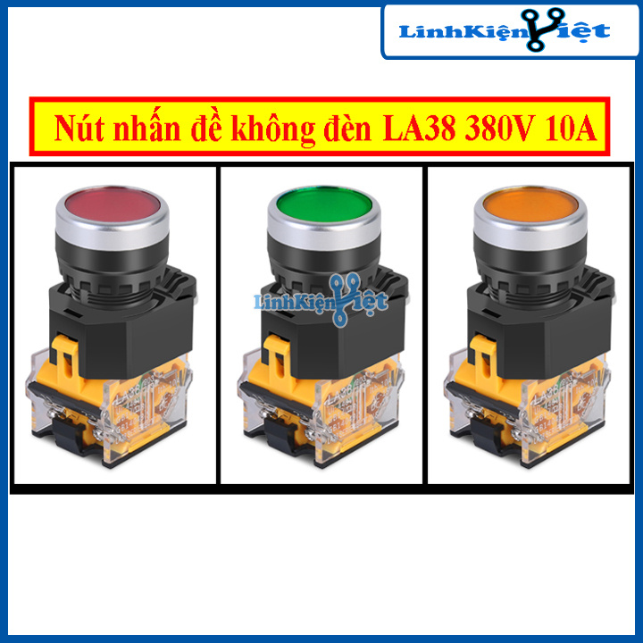 Nút Nhấn Đề Nhả Không Đèn LA38 380V 10A 2 Tiếp Điểm 1 Mở - 1 Đóngnút nhấn đề Thường được sử dụng trong các tủ điện công nghiệp, bộ phận truyền tín hiệu sử dụng thao tác ấn một lần trong thời gian dài và chỉ nhả ra sau khi đã hoàn thành công việc.. Nút nhấn có 1 tiếp điểm thường mở và 1 tiếp điểm đóng