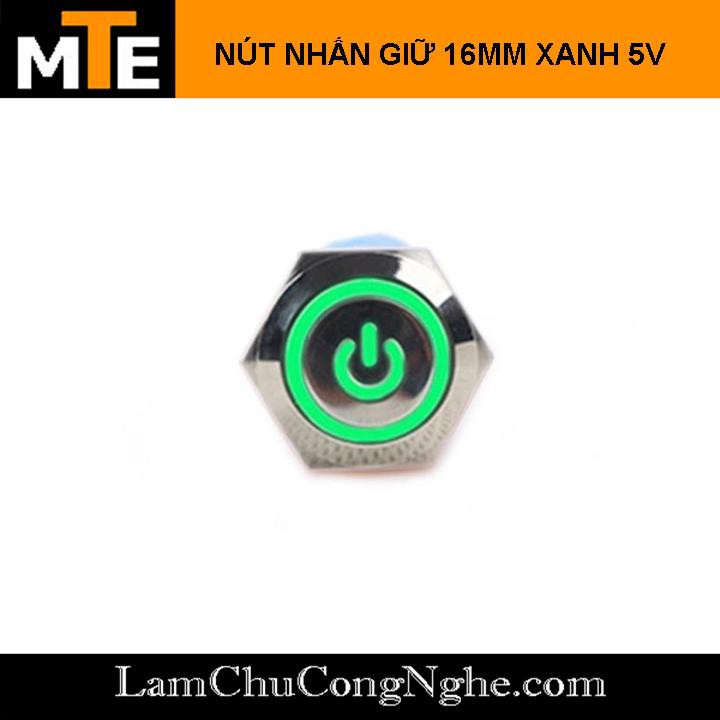 Nút nhấn giữ - nút nguồn có led 16mm 3-6V Xanh, Đỏ