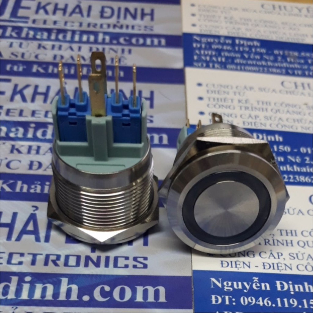 Máy tính & Laptop > Linh Kiện Máy Tính > Khác || nút nhấn inox chống nước, dạng tròn khoét lỗ 22mm, nút nhấn đề, nhấn nhả GQ22 đầu phẳng led vòng tròn 12-24V kde4655Còn hàng