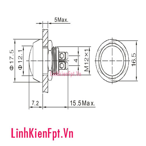 Nút nhấn nhả 12V 12MM đầu tròn (chống nước)Thông tin sản phẩm: