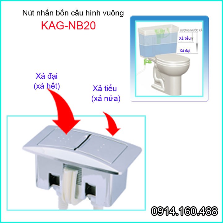 Nút nhấn xả bồn cầu KAG-NB20, nút nhấn hình chữ nhật, nút nhấn cầu Inax C504, C702VRN