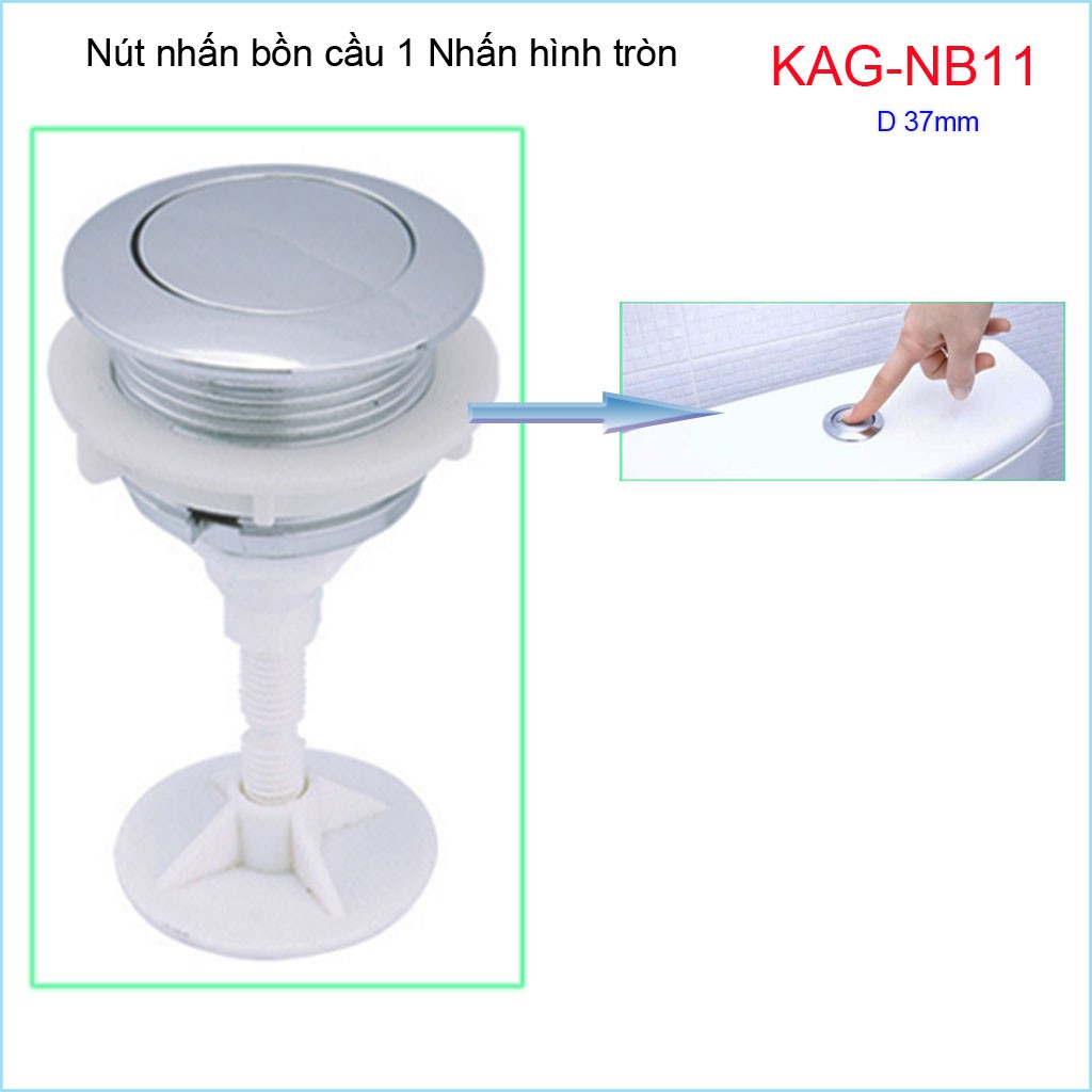 Nút nhấn xả bồn cầu, nút nhấn cầu xả 1 nhấn KAG-NB11Đường kính khoét lỗ sứ để lắp nút nhấn : 3->3.5cm