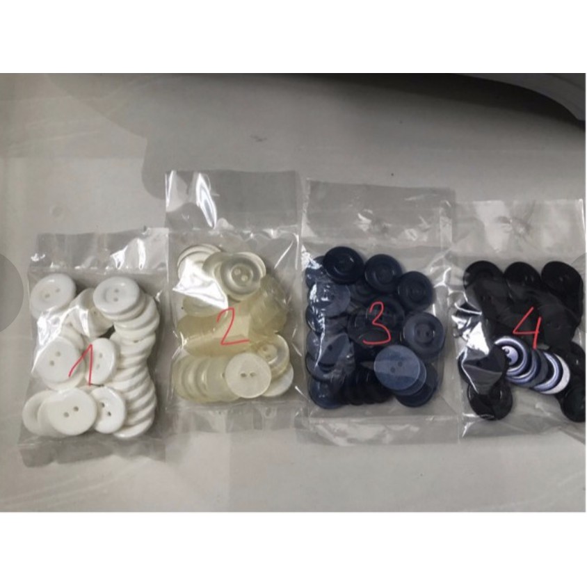 Nút nhựa 2cm bịch 30 nút giá 15kỨng dụng đơm nút áo khoác, nút quần, nút trang trí...