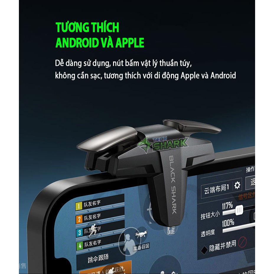 Nút TRIGGER vật lý Black Shack tương thích cho Android và Apple,cảm ứng nhạy bén và không có độ trễ khi chơi game,thiết kế rãnh phù hợp.Cảm ứng chính xác, sử dụng dây hợp kim đồng bạc + môi trường silicagel dẫn điện, nhạy bén và không có độ trễ. GIải pháp cảm ứng vi tần số điện dung,tinh chỉnh không có cảm ứng sai.Có vai trò như chuột khi chơi game, các nút hợp kim kẽm + công tắc vi mô chuyên nghiệp,điều chỉnh cảm giác chuột khi chơi game,thiết kế rãnh kín tránh chạm vào các nút bên cạnh, màn hình có dạng đặc biệt cũng sử dụng được, thiết kế đối xứng hoàn toàn, không phân biệt trái phải ,dễ dàng sử dụng,nút bấm vật lý thuần túy,không cần sạc.-----------------------------------------