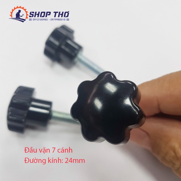 Nút vặn có phần ti ren bằng thép, ren vặn sắc nét, phần đầu núm vặn bằng nhựa dày mầu đen bóng.Đường kính núm vặn 24mm, dầy 10mm