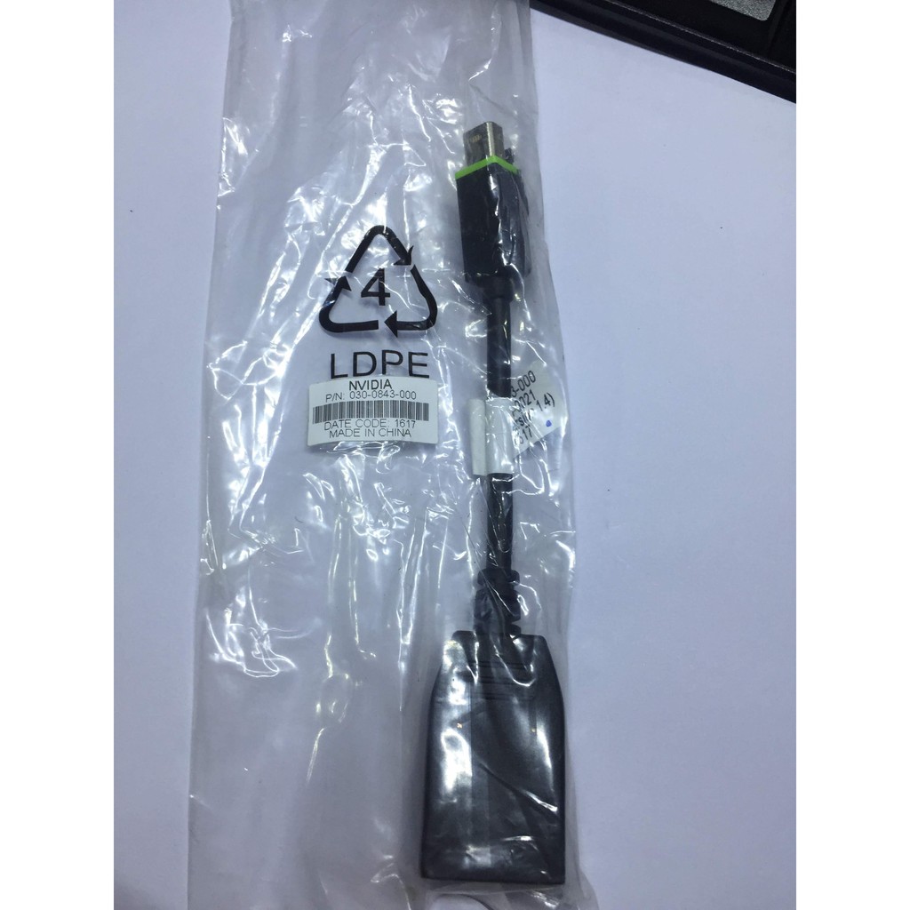 nVidia mini-DP Display Port to Display Port V1.4 Convert Adapter chính hãng PN:030-0843-000Đầu chuyển Mini Display Port to Display Port V1.4 dùng kết nối từ pc, laptop đến lcd, tivi máy có cổng dlp. PN:030-0843-000