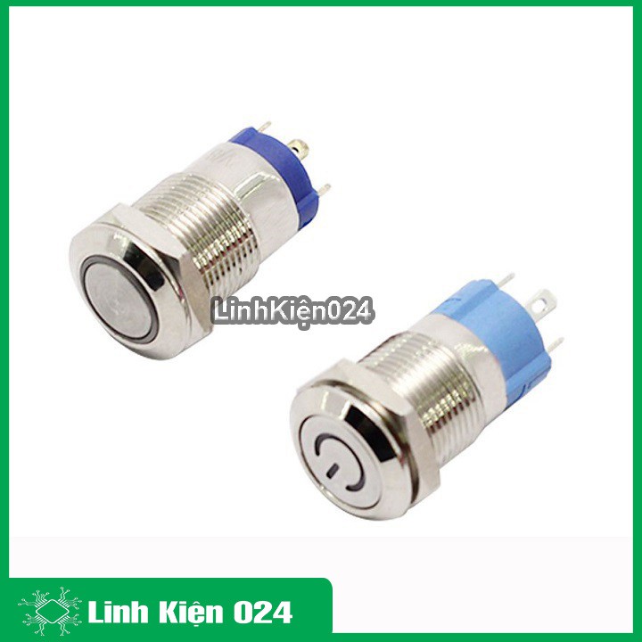 [NW] Nút Nhấn Đề Sắt Chống Nước Có Đèn Báo 12VDC-12mm Nhấn Giữ