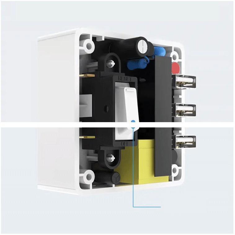 - Ngoài tích hợp 3 ổ cắm thông thường, ổ cắm đa năng XiaoMi còn trang bị 3 cổng USB hỗ trợ sạc các thiết bị điện tử di động tiện lợi với công suất lên đến 5.0V - 2.1A.