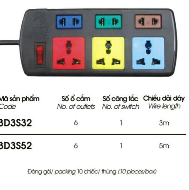 Thiết Bị Điện Gia Dụng > Mạch điện & Phụ tùng > Ổ cắm điện & Dây nối || Ổ cắm dây 3D3S LIOACòn hàng