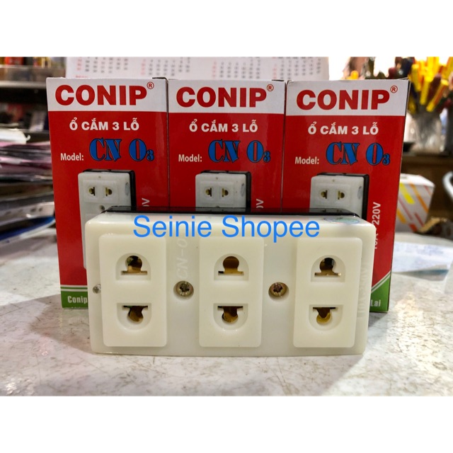 Nhà cửa & Đời sống > Dụng cụ & Thiết bị tiện ích > Dụng cụ > Khác || Ổ cắm điện 3 lỗ có đèn Conip CN03Còn hàng