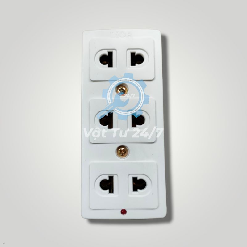 Ổ Cắm Điện 3 Lổ gắn nổi LiOA Việt Nam 16A phíp đồng chống giãn có đèn báo