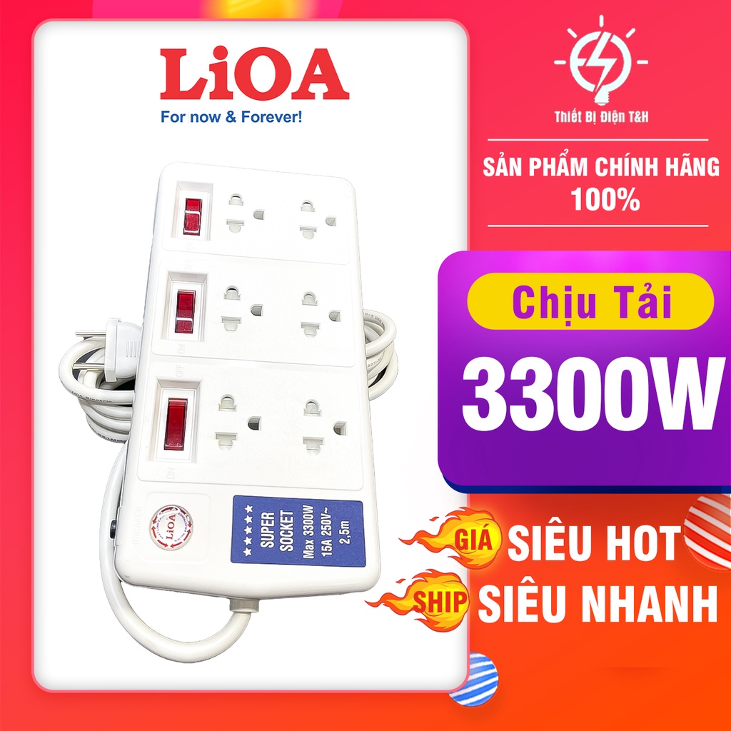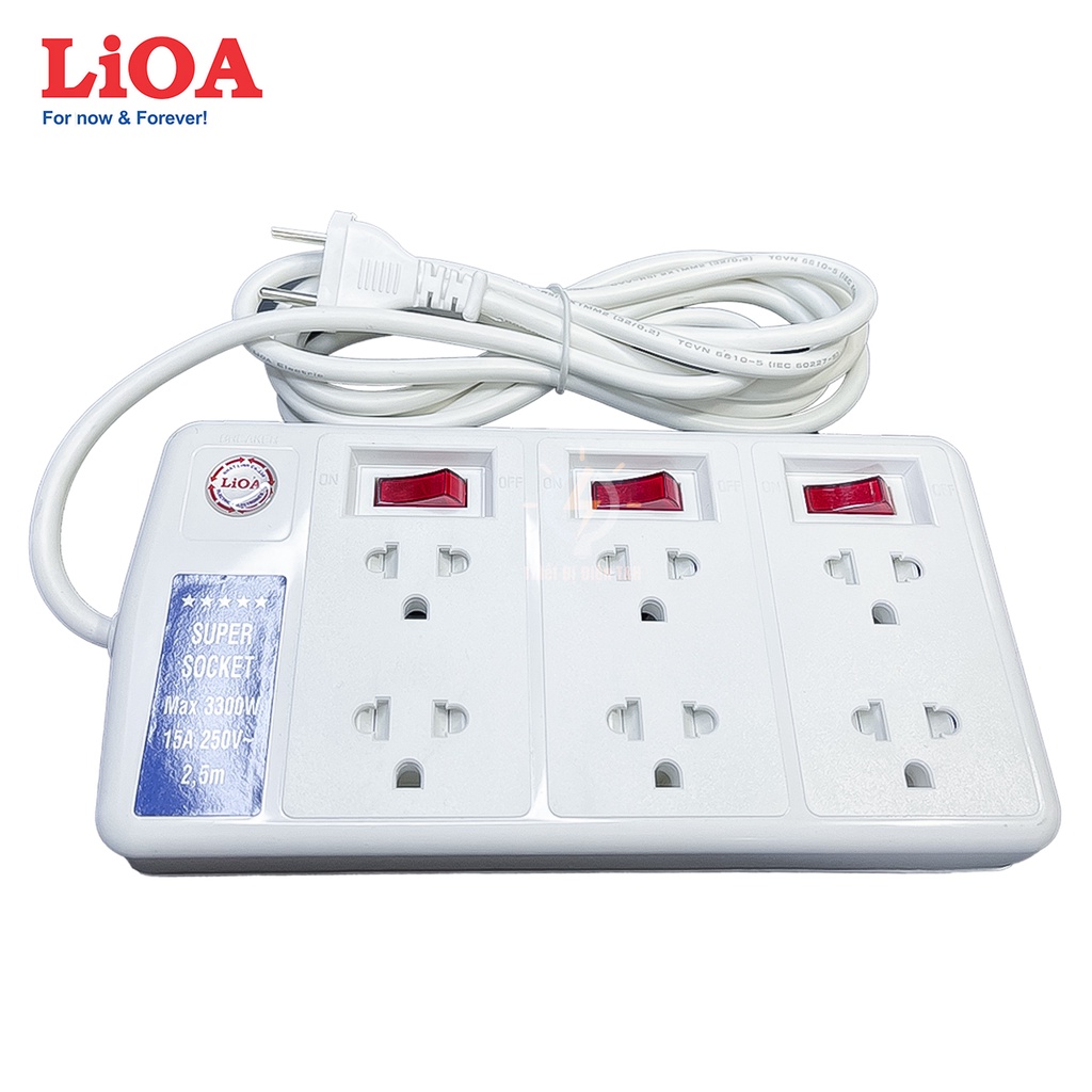 Thiết Bị Điện Gia Dụng > Mạch điện & Phụ tùng > Ổ cắm điện & Dây nối || Ổ cắm điện công suất lớn, ổ cắm chịu tải 3300W, cao cấp, LIOA, 6 ổ cắm đa năng, 3 công tắc, 6SS2.5-2Còn hàng
