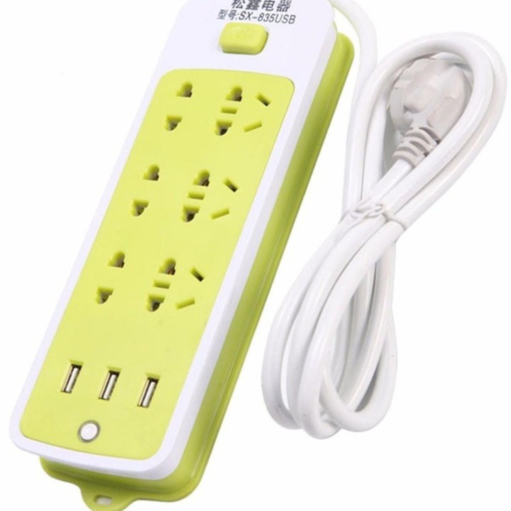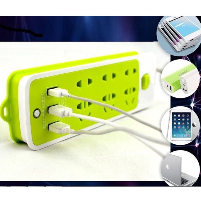 Ổ Cắm Điện Đa Năng 16 Lỗ Chống Giật Có 3 Cổng Sạc USB Màu Xanh Tiện Dụng