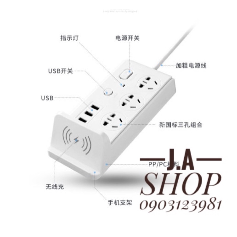Giới thiệu Ổ Cắm Điện Đa Năng Kiêm Sạc Không Dây 3 Cổng USB Sạc Nhanh Dài 2,8 Mét, Ổ Chịu Tải 2500W, Tiết Kiệm Điện, Chống Cháy Nổ