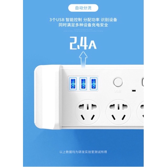 Thiết Bị Điện Gia Dụng > Mạch điện & Phụ tùng > Ổ cắm điện & Dây nối || Ổ Cắm Điện Đa Năng Kiêm Sạc Không Dây 3 Cổng USB Sạc Nhanh Dài 2,8 Mét, Ổ Chịu Tải 2500W, Tiết Kiệm Điện, Chống Cháy NổCòn hàng