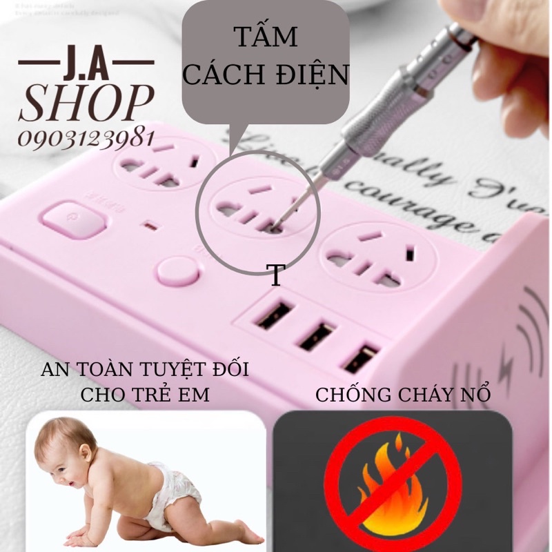 Ổ Cắm Điện Đa Năng Kiêm Sạc Không Dây 3 Cổng USB Sạc Nhanh Dài 2,8 Mét, Ổ Chịu Tải 2500W, Tiết Kiệm Điện, Chống Cháy Nổ, Ổ Cắm Sạc Điện Thông MinhMỔ TẢ SẢN PHẨM