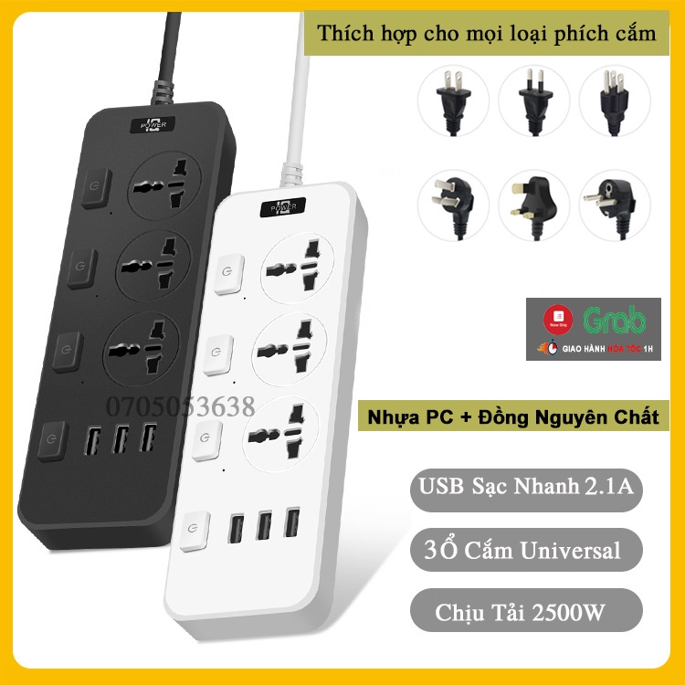 Thiết Bị Điện Gia Dụng > Mạch điện & Phụ tùng > Ổ cắm điện & Dây nối || Ổ Cắm Điện Đa Năng Thông Minh 3 Cổng USB Sạc Nhanh 5V-2.1A Công Suất 2500W Vật Liệu Chống Cháy Dây Nối Dài 2M OCD04Còn hàng