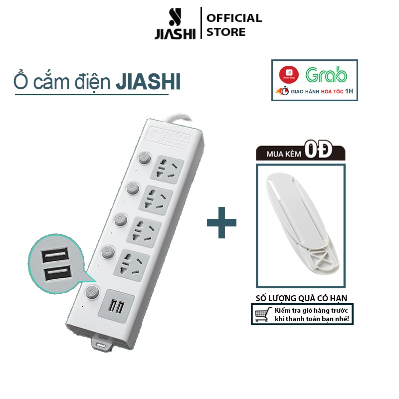 Thiết Bị Điện Gia Dụng > Mạch điện & Phụ tùng > Ổ cắm điện & Dây nối || Ổ cắm điện đa năng thông minh JIASHI 2 cổng USB 5v sạc nhanh, chịu tải 2500W, tiết kiệm 30 kilowatt H dây nối 2,5m OCD01Còn hàng