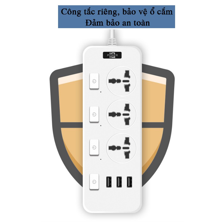 Thiết Bị Điện Gia Dụng > Mạch điện & Phụ tùng > Ổ cắm điện & Dây nối || Ổ Cắm Điện Đa Năng Thông Minh 3 Cổng USB Sạc Nhanh 5V-2.1A Công Suất 2500W Vật Liệu Chống Cháy Dây Nối Dài 1,8M OCD04Còn hàng