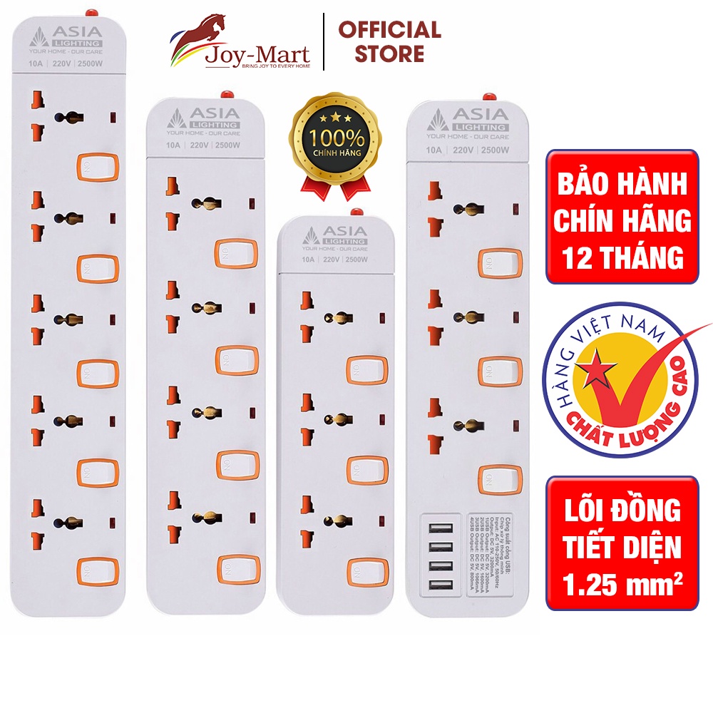 Giới thiệu Ổ Cắm Điện Đa Năng Thông Minh Cao Cấp ASIA Chịu Tải 2500W An Toàn Chống Giật Có Cổng USB 5V Sạc Nhanh Dây 3m 5m