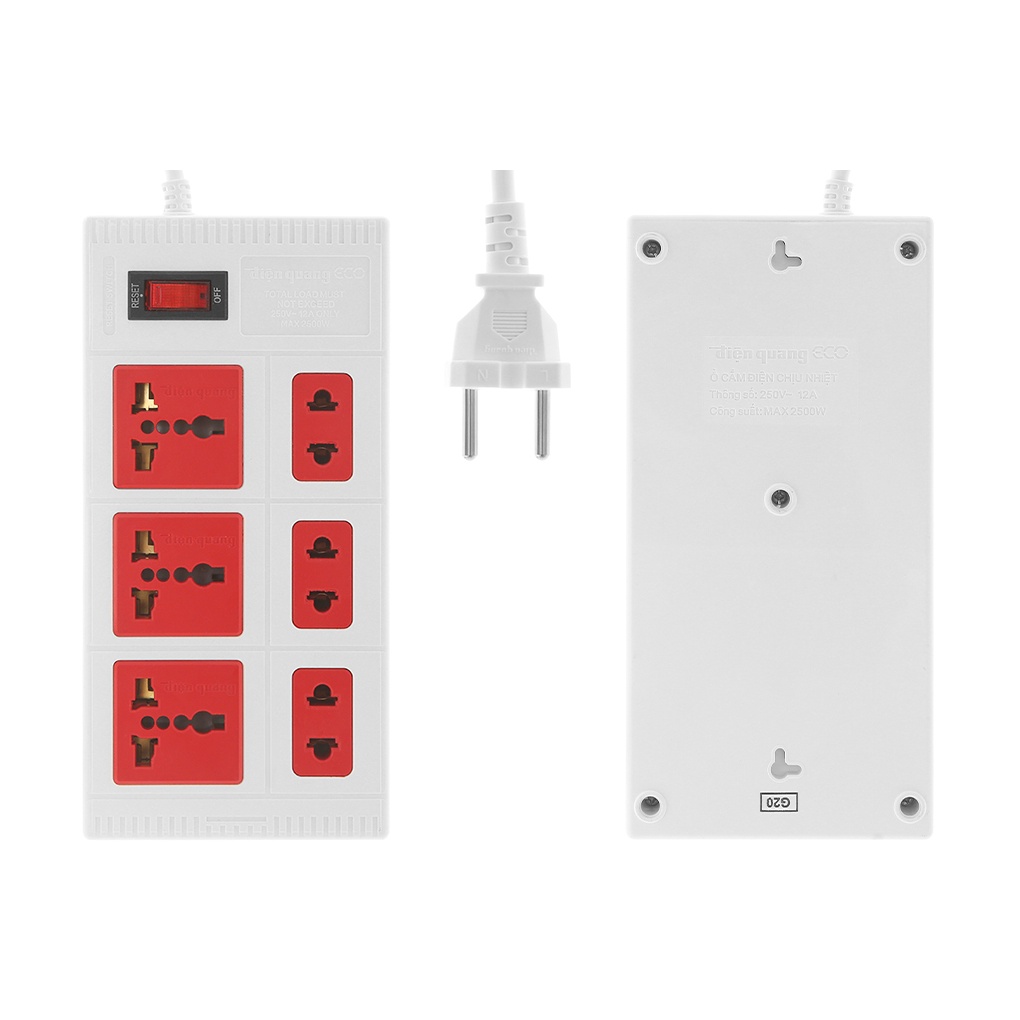 ● Ổ cắm điện Điện Quang 6 lỗ gồm: 3 lỗ 3 chấu và 3 lỗ 2 chấu