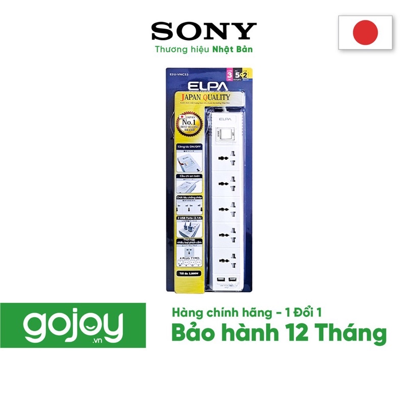 Thiết Bị Điện Gia Dụng > Mạch điện & Phụ tùng > Ổ cắm điện & Dây nối || Ổ Cắm Điện ELPA ESU-VNC53Còn hàng