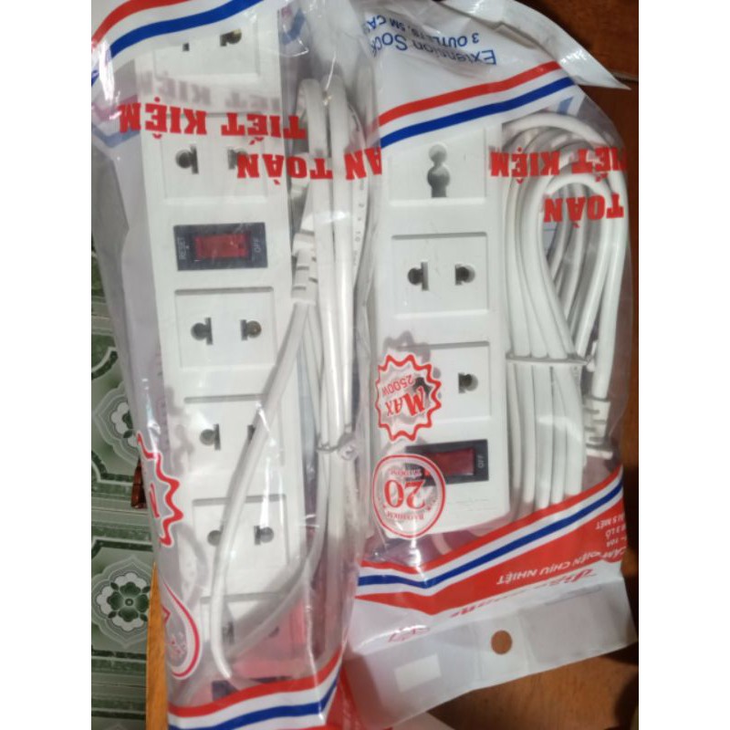 Ổ Cắm Điện Quang 3 Lỗ Có Dây▪︎Sản phẩm được thiết kế gồm 2 lỗ 2 chấu và 1 lỗ 3 chấu, rất tiện lợi cho việc sử dụng cùng lúc nhiều thiết bị cần nguồn điện trong phòng. Kết cấu lỗ cắm được chế tạo từ công nghệ cao.