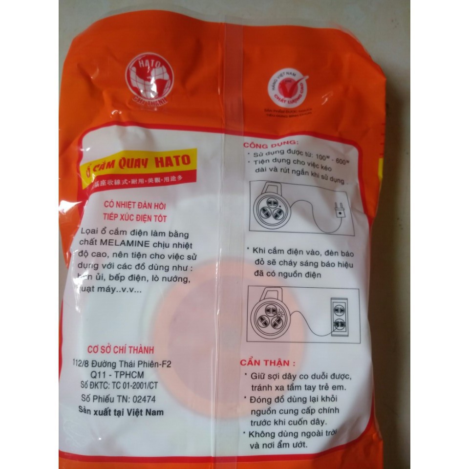 ♻ Thông Tin Sản Phẩm: ✔ Ổ Cắm Điện Quay Hato 5M- Ổ cắm điện quay HATO có thiết kế bằng nhựa PP, có tính dẻo và chịu nhiệt độ nóng chảy cao. Thường được sử dụng trong sinh hoạt gia đình hoặc trong bàn làm việc.