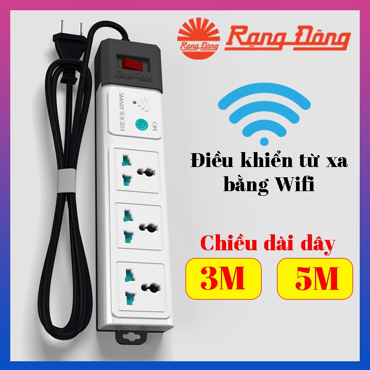 Ổ cắm điện thông minh Rạng Đông điều khiển từ xa bằng Wifi, dây dài 5 mét, tương thích với mọi loại phích cắm