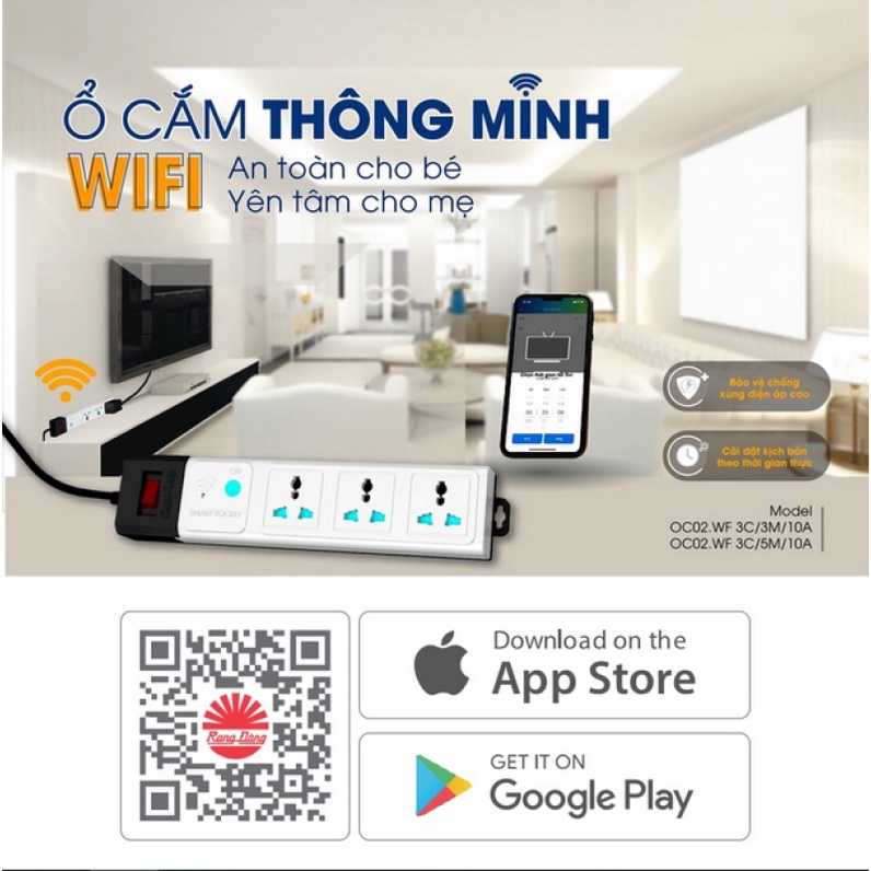 Thiết Bị Điện Gia Dụng > Mạch điện & Phụ tùng > Ổ cắm điện & Dây nối || Ổ Cắm điện thông minh Rạng Đông OC02, kết nối wifi, điều khiển bật tắt qua điện thoại, chống giật, bh 1 nămCòn hàng